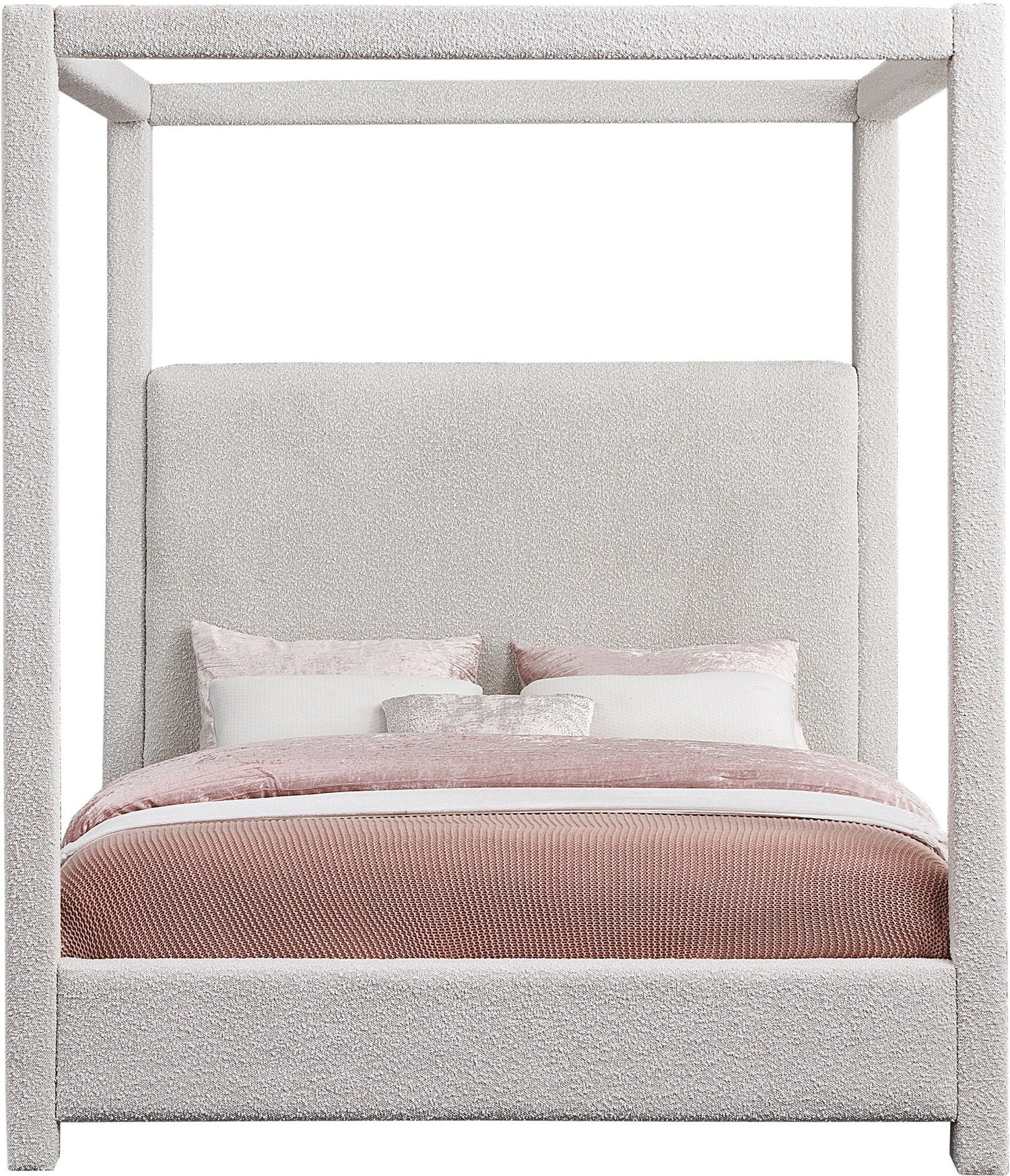 Experience the epitome of luxury and serenity with the Eden Boucle Fabric Canopy Bed, a majestic haven that elevates your bedroom into a royal chamber. Wrapped in a rich boucle fabric, this captivating bed exudes timeless elegance and invites you to indulge in restful nights and dreamy mornings. The airy canopy, draped in the same luxurious boucle fabric, creates a sense of intimacy and seclusion, transforming your sleeping space into a private sanctuary. Imagine reading a captivating book or enjoying a late-night conversation under the soft glow of string lights draped across the canopy, creating a truly magical atmosphere.