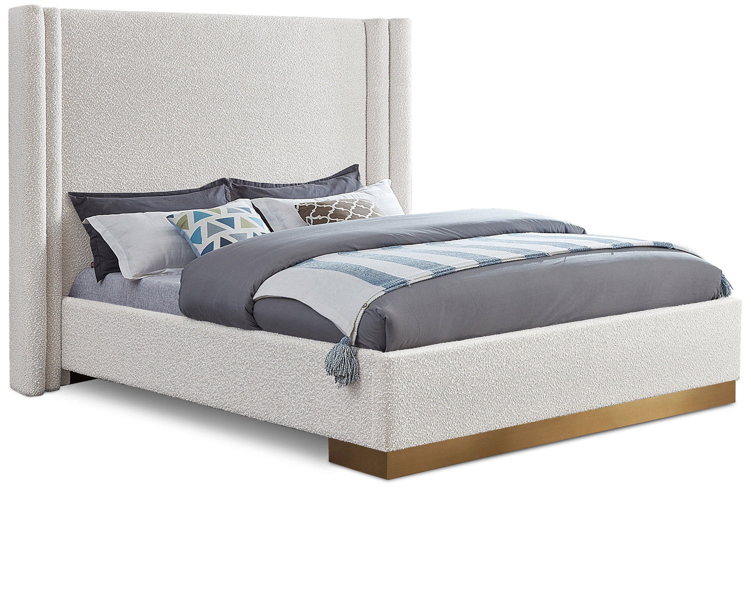 Settle in like royalty each night when you make this Halton boucle fabric bed yours. This eye-grabbing bed is destined to become the centerpiece of your bedroom sanctuary with its rich boucle fabric upholstery covering every square inch of its super-tall headboard and sides. This bed features a sturdy frame, so you can count on it weathering the sands of time and being a beautiful part of your bedroom for years to come.