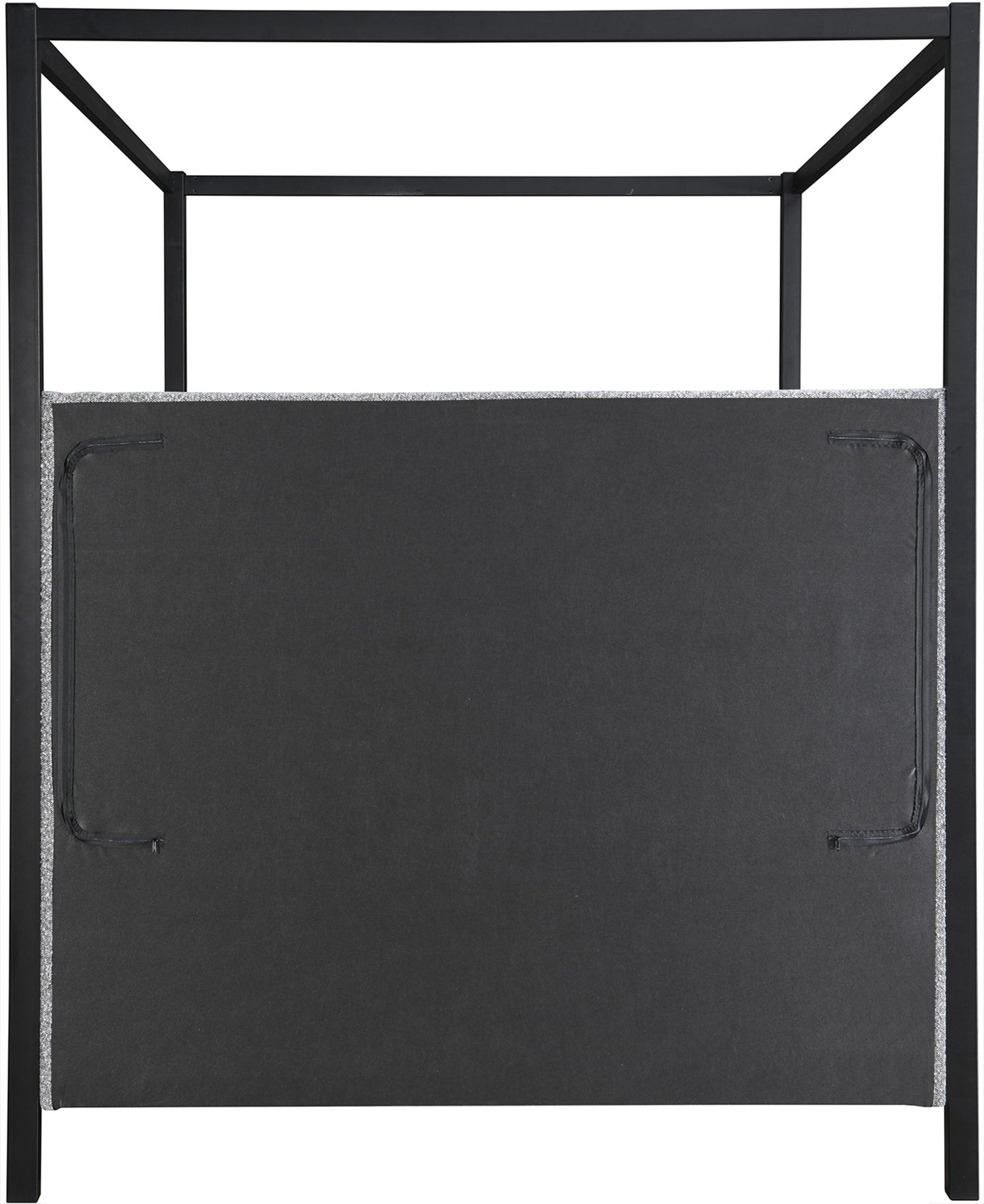 Immerse yourself in a haven of tranquility and refined design with the Kelly Boucle Fabric Bed. This captivating centerpiece seamlessly blends the rich texture of boucle fabric with a salt & pepper-colored undertone, creating a visual harmony that elevates your bedroom while fostering restful nights. The matte black iron metal frame canopy adds a touch of drama and elegance, transforming your space into a private sanctuary. Imagine the soft glow of fairy lights draped across the canopy, creating a magical ambiance perfect for unwinding after a long day or enjoying a cozy reading nook. This canopy provides not only a touch of privacy but also an opportunity to personalize your space and create a truly unique retreat.