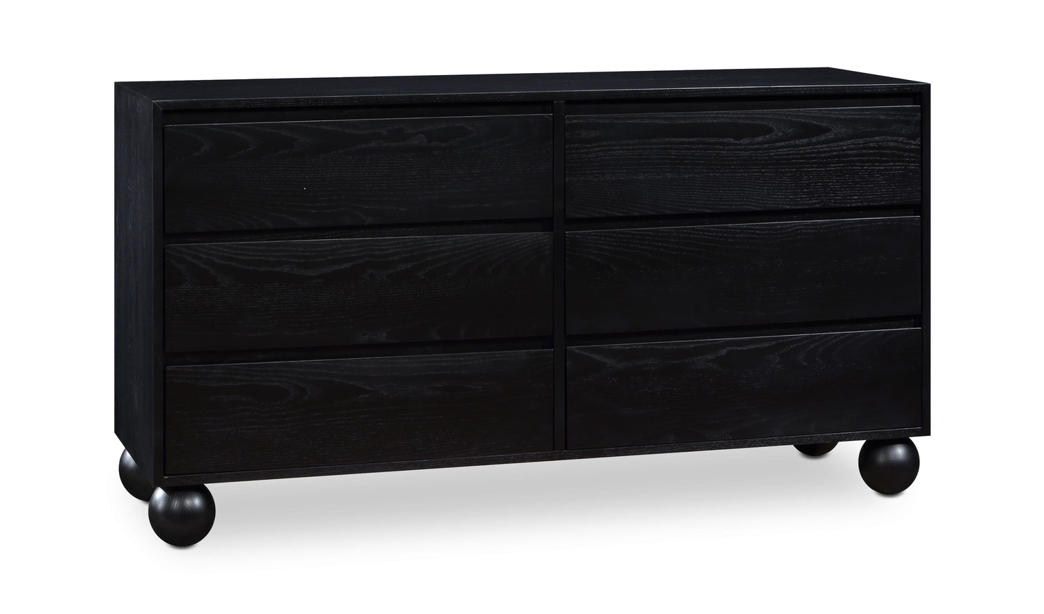 Revamp your bedroom with the sleek design of the Kent Dresser. Crafted from solid ash wood and finished in a rich, deep hue, this dresser features clean lines and a minimalist design that is sure to impress. The ball-shaped legs add a touch of luxury and elegance, creating a truly timeless look that will enhance any living space. Whether you're looking for a stylish storage solution for your bedroom or a statement piece for your living room, the Kent Black Chest is the perfect choice.