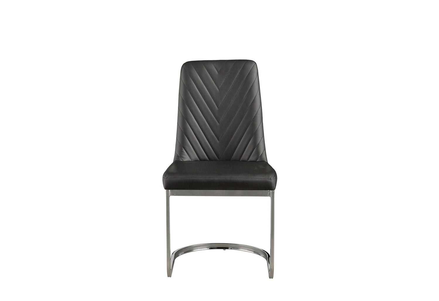 Perfect for your kitchen or breakfast nook, this chic dining chair will transform your room and add comfort and a touch of elegance. This chair is upholstered in tones of pure white PU with chevron embedded back design, providing an eye-catching and contemporary twist to traditional kitchen seating. Decorating possibilities are endless with the attractive tones of this chair. Additional design elements include horseshoe style chrome toned rounded base and ample padding, continuing the delightful look and comfy feel of this seating. Quality craftsmanship in every facet of production ensures durability and long-lasting wear. For an attractive, modern take on kitchen or dining room furnishings, this chair is a can't miss choice in comfortable seating.