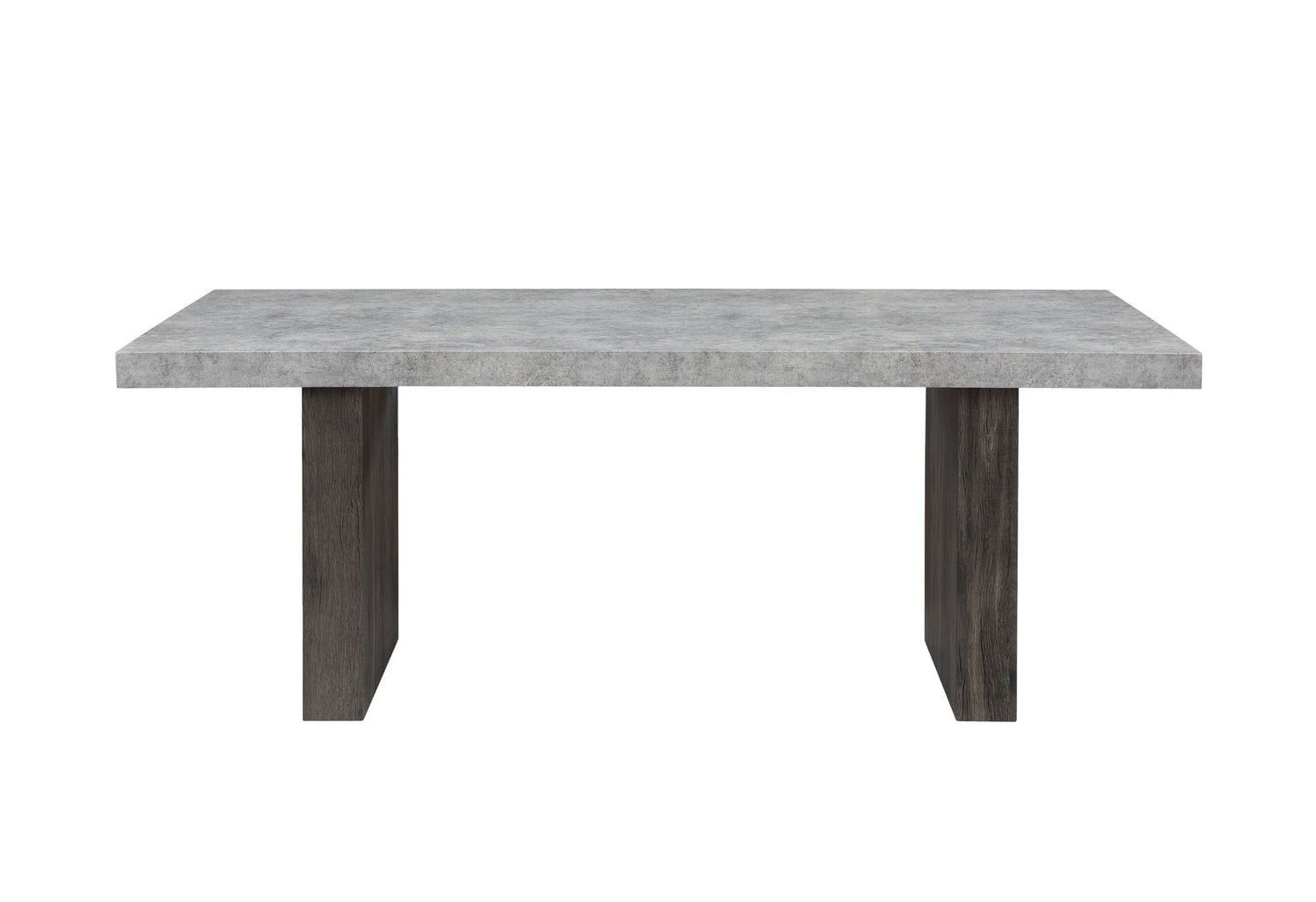 Elevate your dining space with the modern elegance of the D2410 Dining Table paired with the D86 Dining Chairs by Global Furniture. The D2410 Dining Table features a sleek grey 3D faux marble paper top that offers the luxurious look of stone with easy maintenance. Two bold dark brown legs provide sturdy support while adding a rich contrast to the table’s contemporary design.