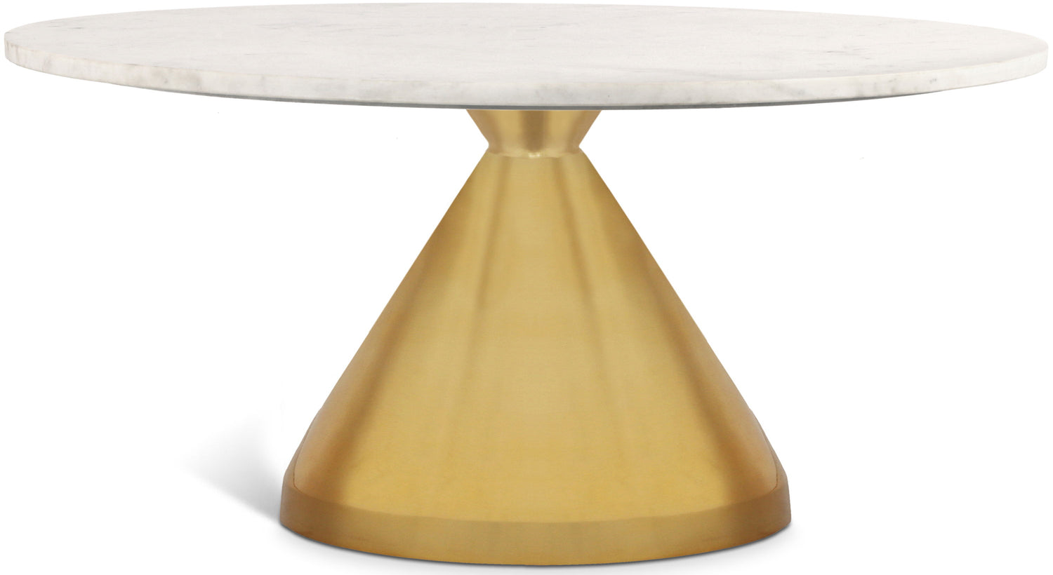 Give your room a style boost with this Emery coffee table. An eye-grabbing addition to your living room or den, this coffee table features a brushed gold stainless steel finish on its base for a glamorous foundation. On top, a genuine white marble slab adds an elegant finish and provides ample room for items you need to keep close at hand. Pair this beautiful white marble coffee table with the matching end table for a beautiful, cohesive feel.