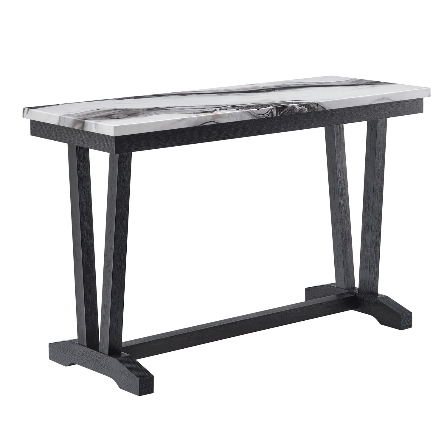 Indulge in contemporary luxury with the T1319 Console Table, a statement piece that effortlessly anchors your space in style. The table top is adorned with a stunning faux panda marble paper finish that mimics the exquisite patterns of natural marble, adding opulence without the hefty price tag. The clean, straight lines of the black wooden legs create a sturdy frame, ensuring stability and durability while contributing to the minimalist aesthetic. This table is not only a visual delight but also a practical surface for your social and dining needs.