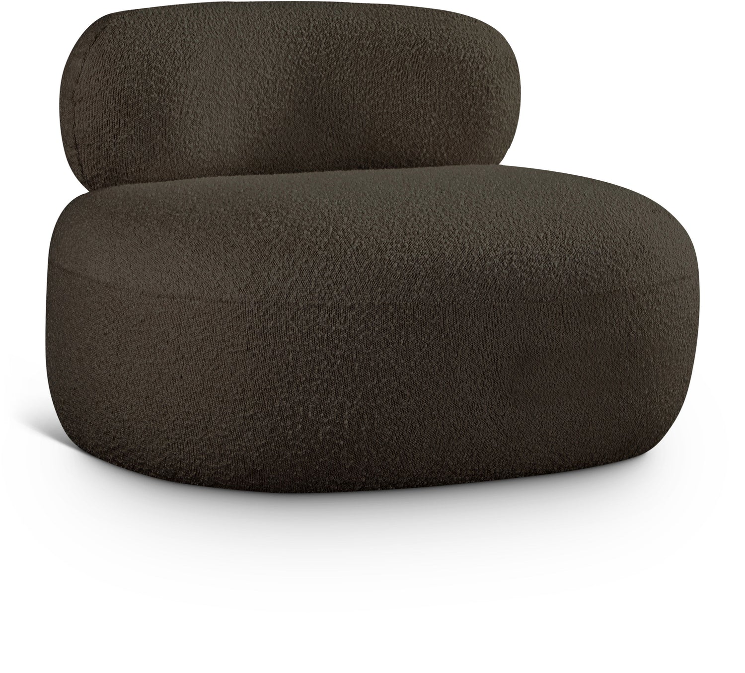 Discover timeless beauty with this Venti boucle fabric living room chair that's designed to elevate your interior space. This exceptionally crafted art-deco-inspired chair is part of the Venti collection and boasts an alluring curved shape to add elegance and refinement to your room. Upholstered in rich boucle fabric, the chair has a plush texture that's oh-so-cozy against the skin. The art deco styling makes it a real statement piece, whether you place it in your living room, home office, or your favorite reading nook.
