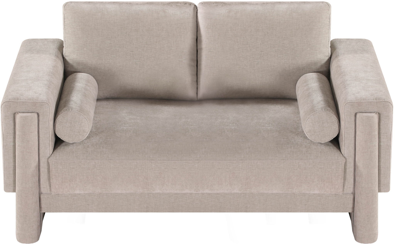 Refresh your living space with this Madeline chenille fabric living room loveseat. It's upholstered in rich chenille fabric with plush padding and bolster pillows that complete the look while supporting your body while you relax and unwind. The loveseat's modish design ensures it seamlessly complements any decor and fits well with other items in the Madeline collection. Whether you're entertaining guests or unwinding with a book, this chair provides both coziness and sophistication.