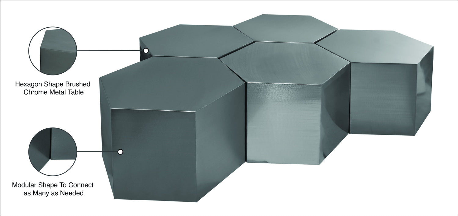 Hexagon - Coffee Table Modular Shape 5 Piece - Pearl Silver