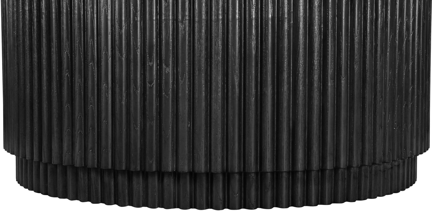Grab family and friends and your favorite board games for a night of fun around this Ronin Coffee Table. Elegant and eye-catching, this beautiful table boasts a rich finish and a fluted design for added visual appeal in the living room or den. It's made from solid wood, MDF, and oak veneer, so it's sturdy and stout enough to last through endless Scrabble matches without missing a beat. The natural wood grain variation gives this coffee table a unique look, while its mid-century design allows it to blend seamlessly into any space you choose to use it.
