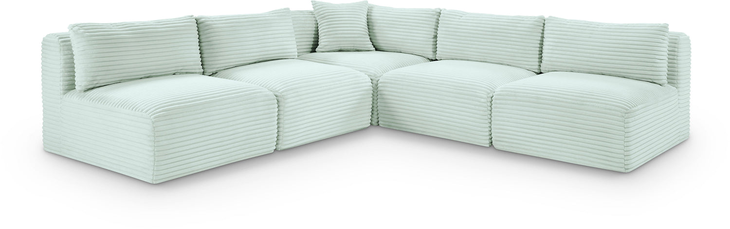 Shaggy - 5 Piece Modular Corner Armless Sectional - Mint