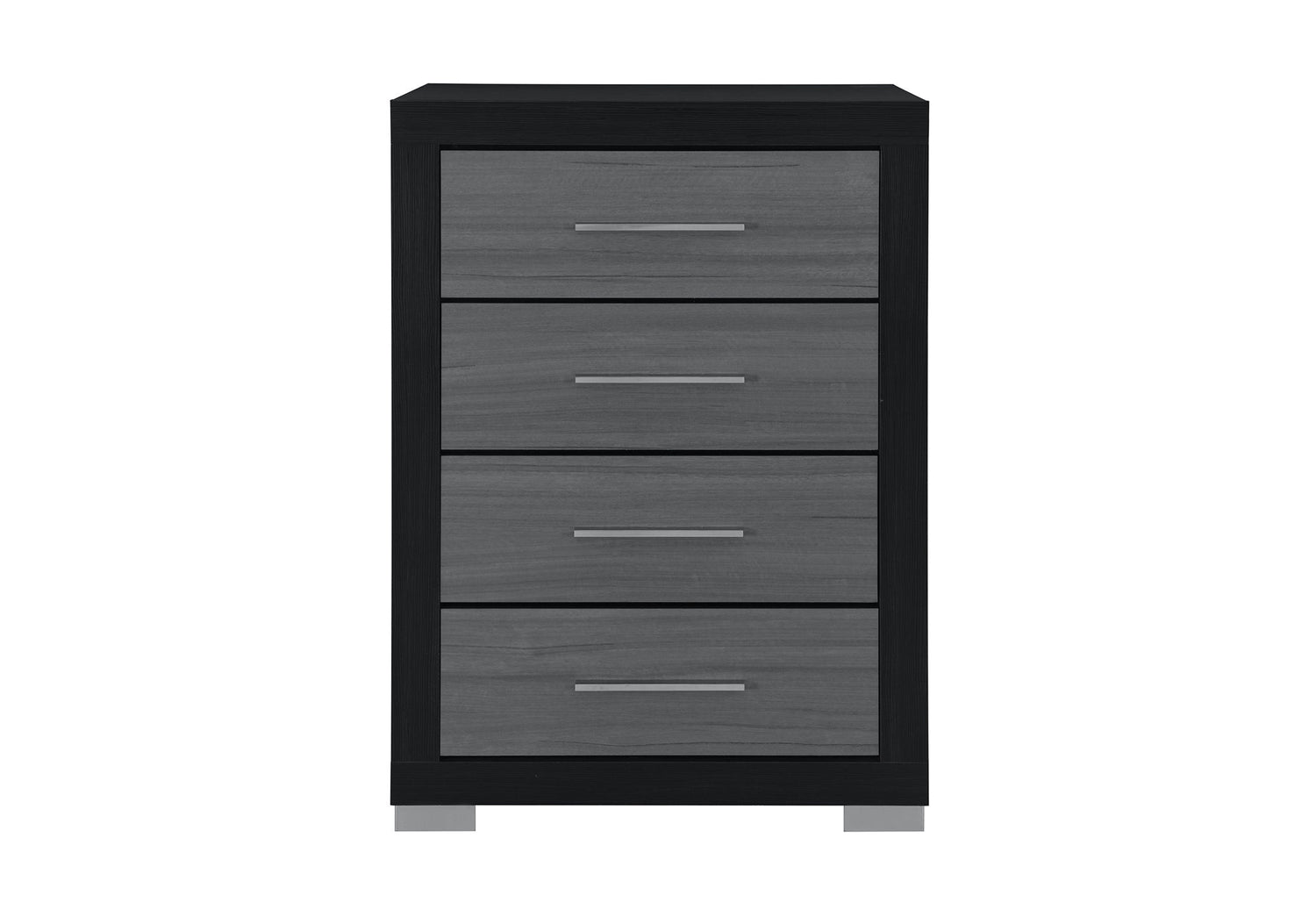 The Emma Chest provides both elegance and practicality, offering ample storage in a compact and stylish design. Finished in the collection's signature black and grey tones, this chest features several spacious drawers, perfect for organizing clothing, linens, and accessories. Its modern design is complemented by its sturdy build, making it a timeless addition to either the Emma or Madison bedroom collection.