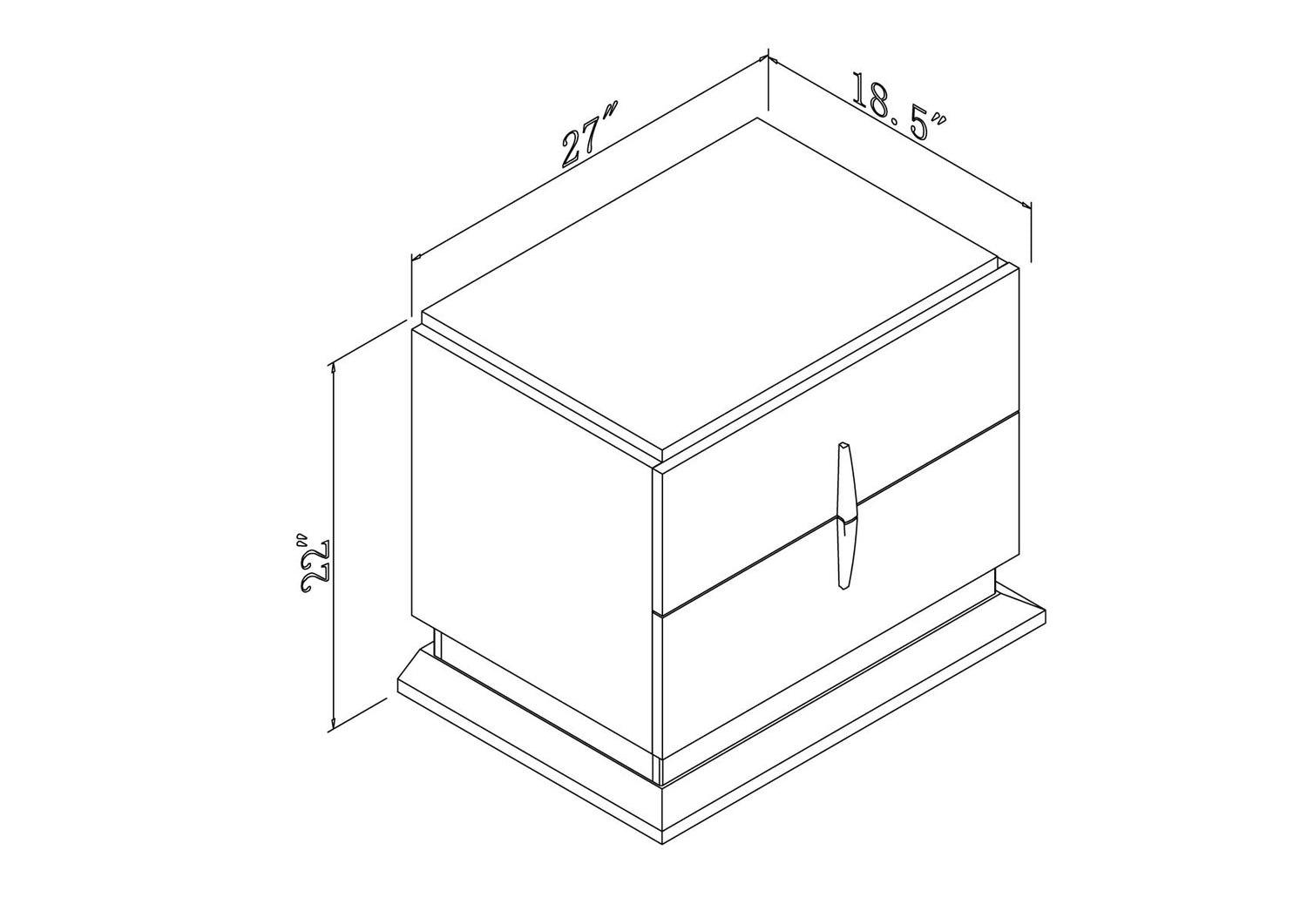 Update your modern bedroom with this nightstand in contemporary and minimal design, the square silhouette fits in well with the rest of the modern furnishings. It features two drawers that open smoothly and has ample room to keep belongings organized and out-of-sight. The spacious top is ideal for essential belongings that you want within reach through the night. Thanks to the contrasting finishes, it creates a vibrant juxtaposition for an eye-catching touch. Quality construction ensures durability for years to come. Designed in Italy to ensure quality. The structure comes in white high gloss finish.