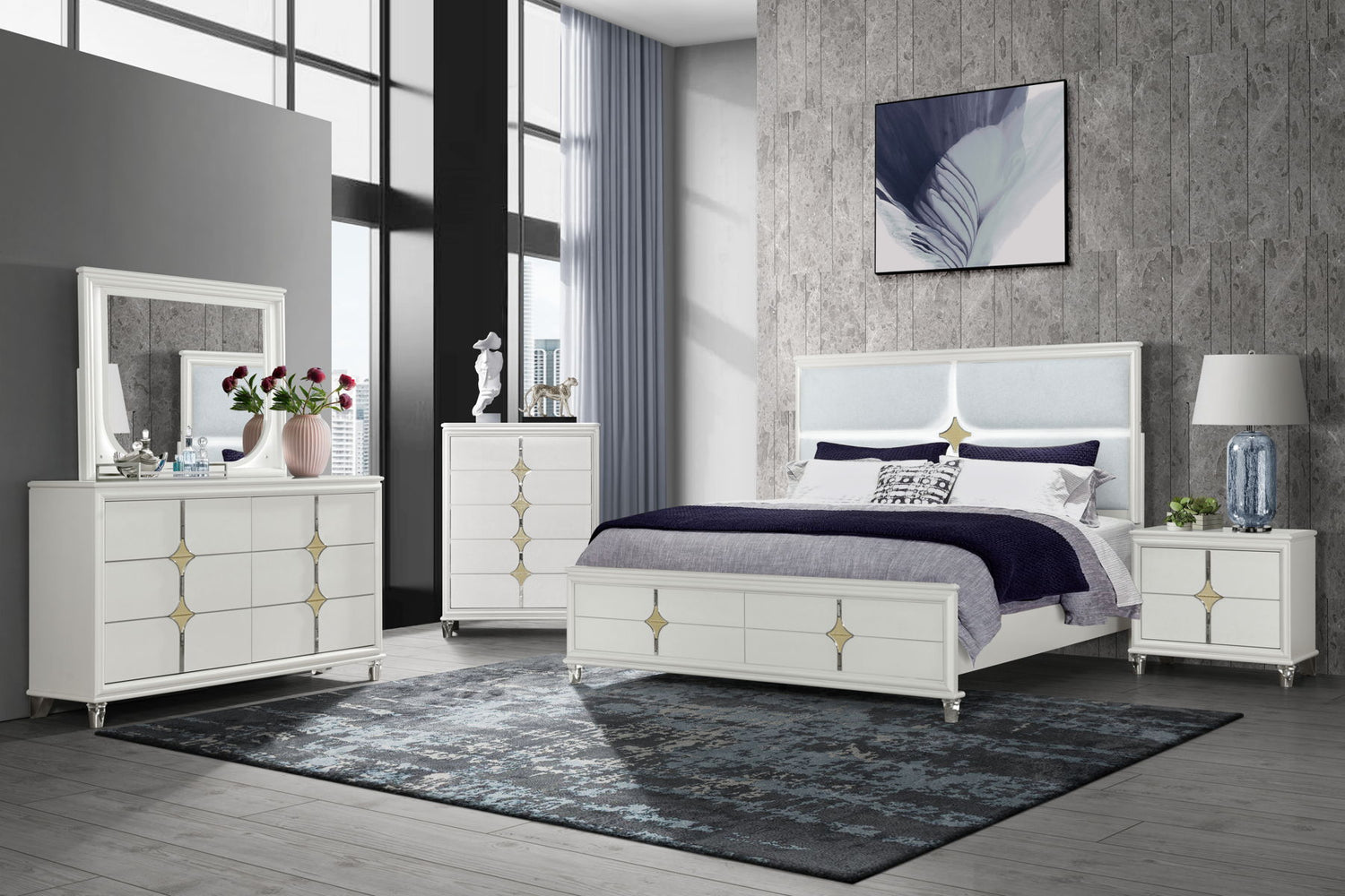 The Orion Nightstand is a perfect balance of style and utility. Its compact design features the collection's signature textured drawer fronts and hidden pulls, enhanced by gold accents and acrylic legs. This nightstand is ideal for keeping your nighttime essentials close at hand.