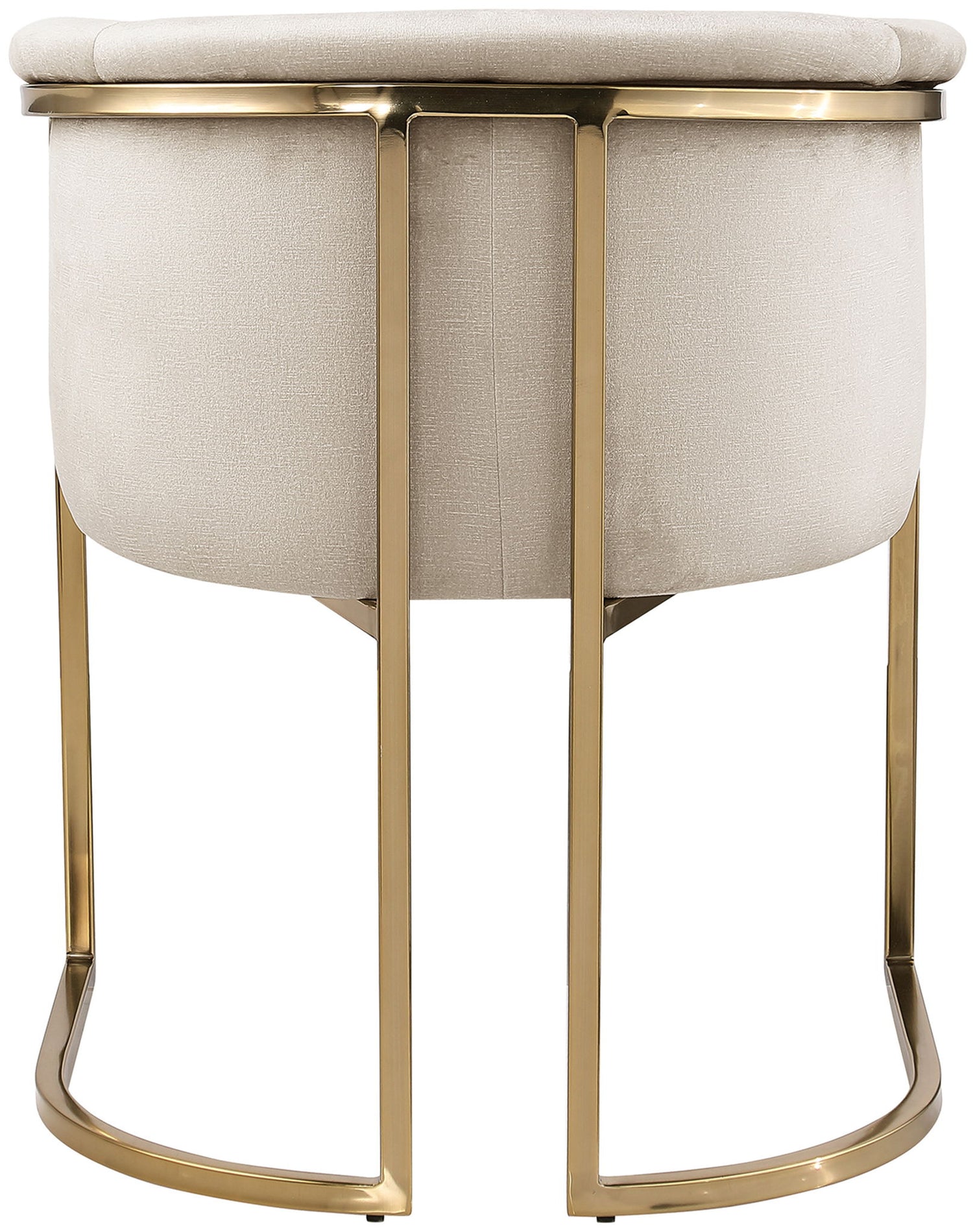 Enjoy body-hugging comfort at every meal with this Tierra velvet dining chair. Rich velvet covers the seat, arms and back of this comfortable yet beautiful chair. The frame is made from durable metal for resilient, long-lasting use, and it features a brushed brass finish for a look that's both modern and elegant. Pair it with the table of your choice for a modern look in your dining room space.