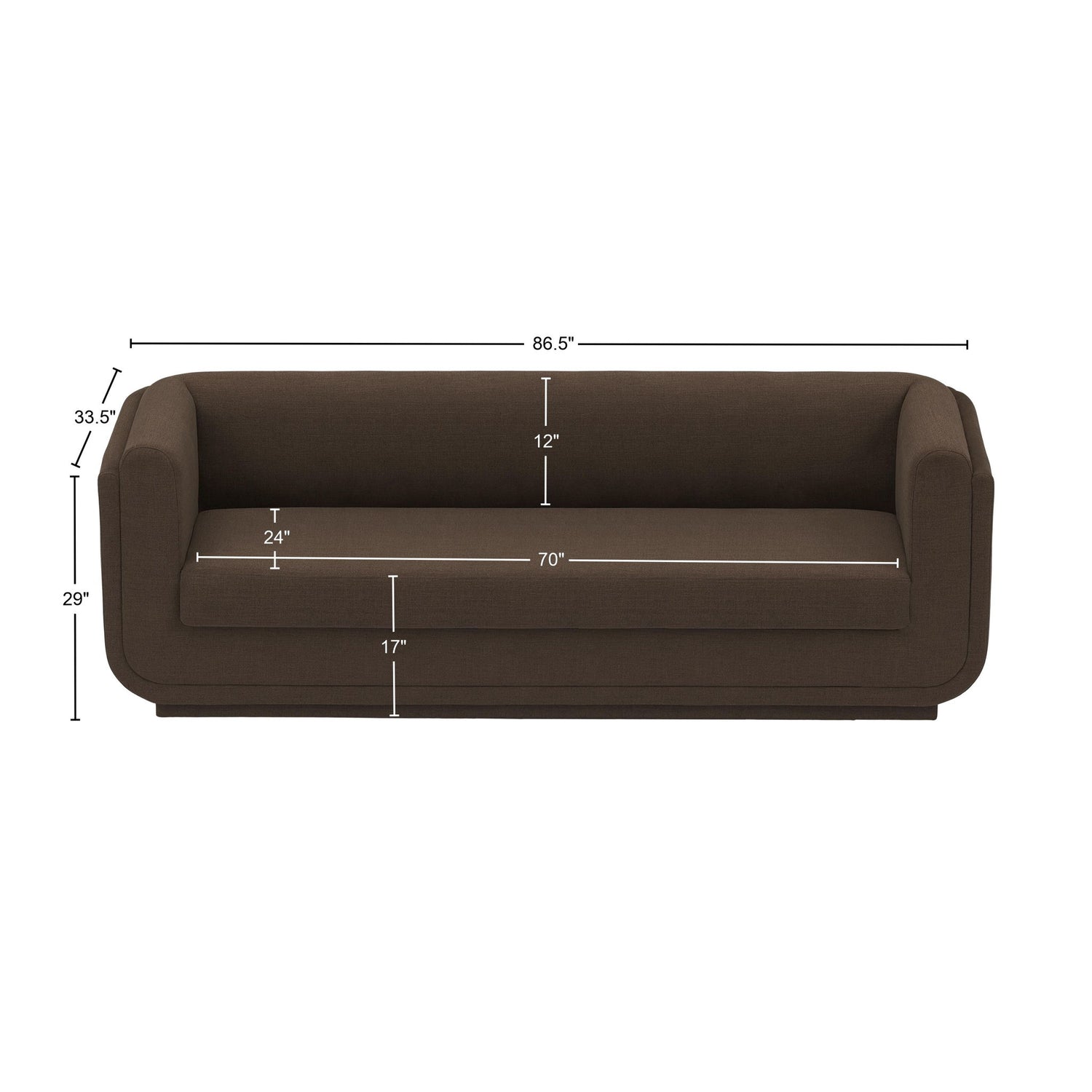 Upgrade your space with this Kimora linen textured fabric sofa that offers a touch of luxury that's as cozy as it is chic. The tactile softness of the fabric adds to its appeal, ensuring that you not only sit in style but in comfort as well. The rounded arms add a contemporary touch and ensure a snug seating experience for relaxing with your favorite book or watching TV. Its sleek and versatile modern design complements any decor, making it a fantastic addition to your room.
