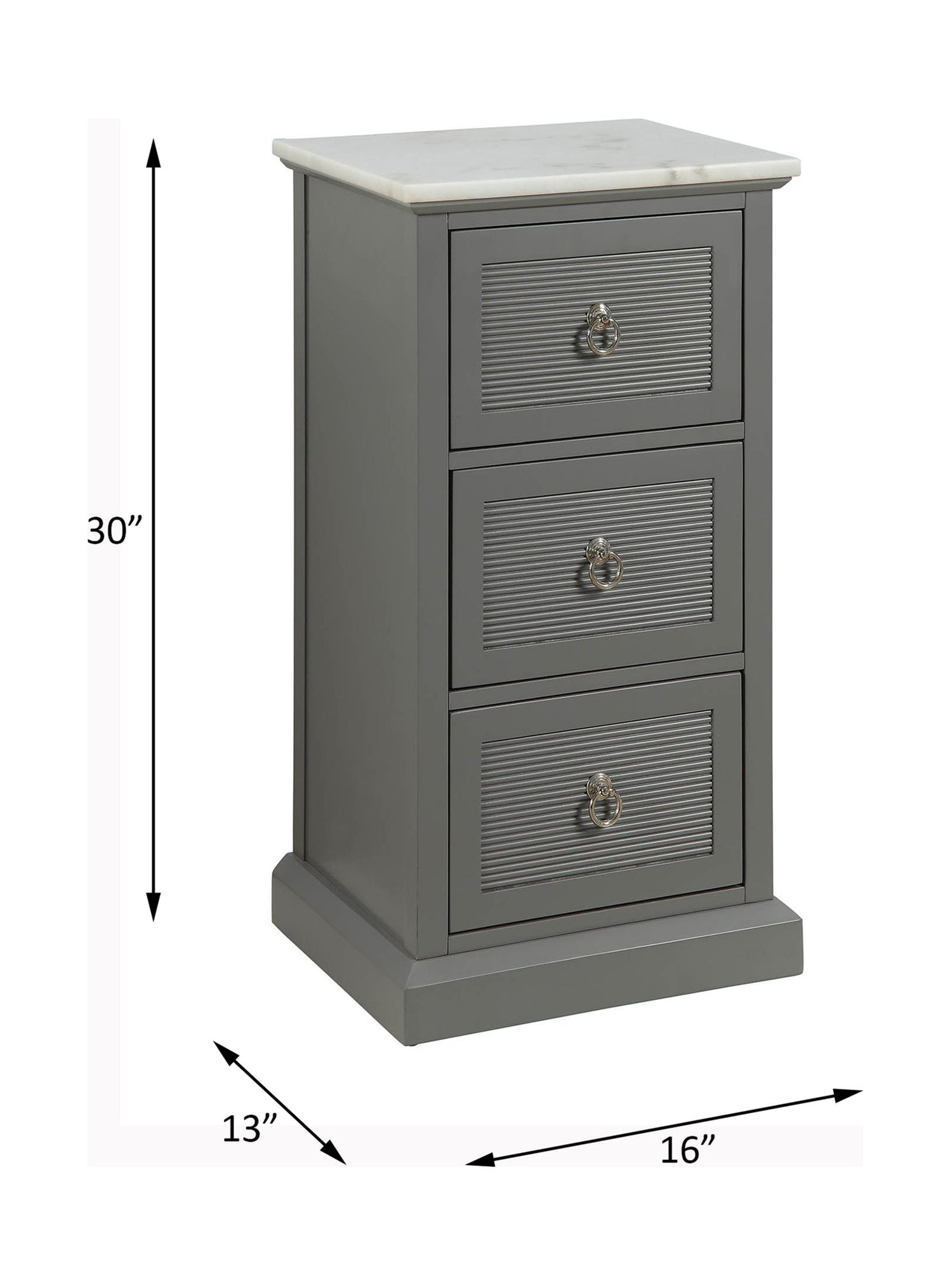 The Swart cabinet will bring order to your bathroom. With the three-drawer design, there are sufficient spaces for you to keep your daily necessities. This piece offers convenience and fashionable taste with its white marble top and gray finish. Modern and practical, it will be a perfect addition to your bathroom decor.