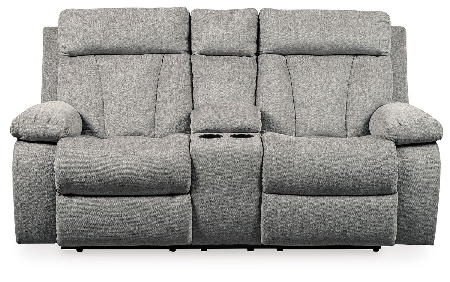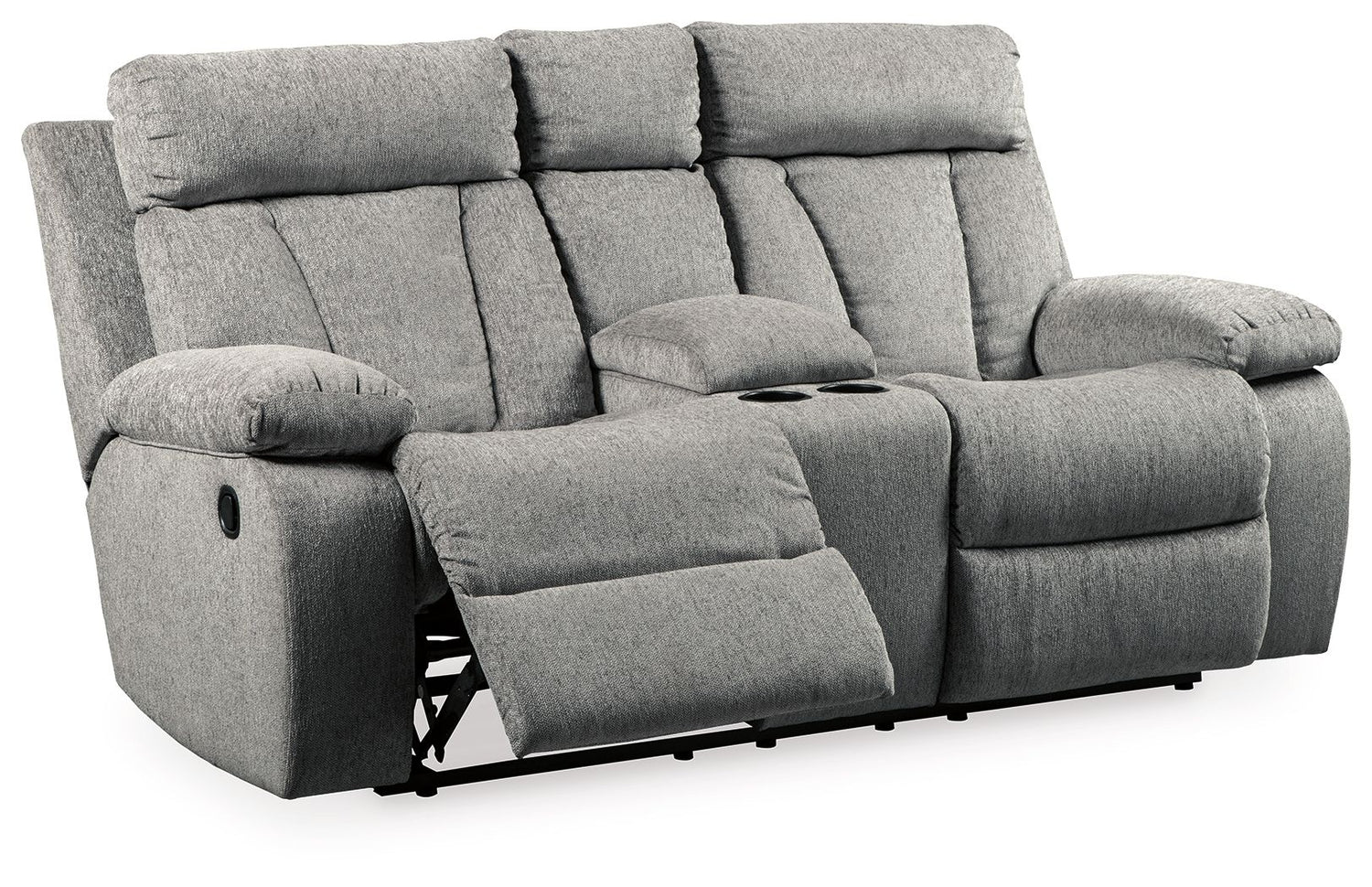 Mitchiner - Fog - DBL Rec Loveseat w/Console
