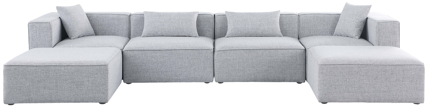 Cube - Linen 6 Piece Modular Double Chaise Sectional - Gray