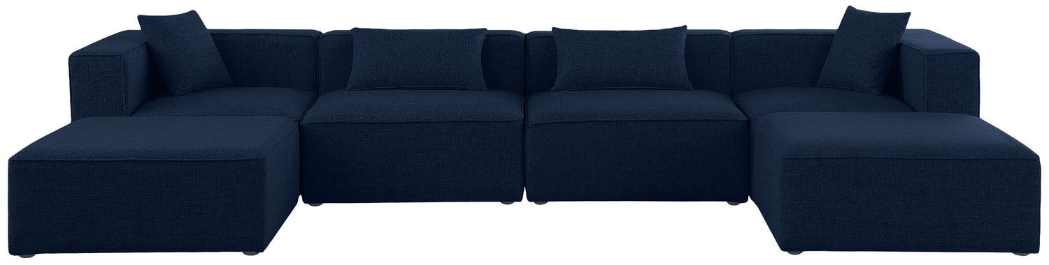 Cube - Linen 6 Piece Modular Double Chaise Sectional - Navy