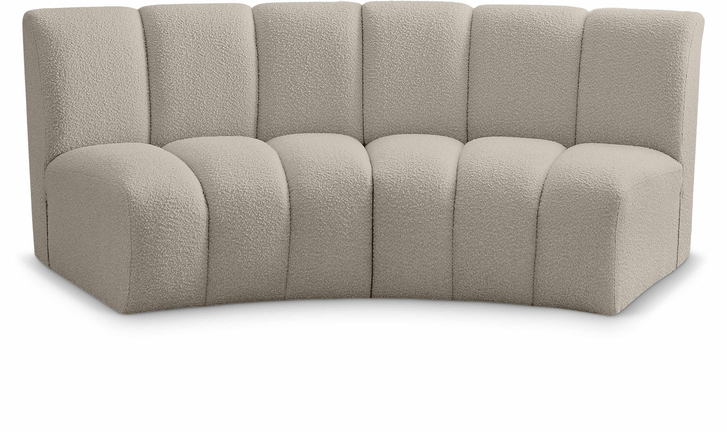 Mix and match this Infinity boucle fabric modular chair with other items in the Infinity collection to find the best possible seating solution for your gang. Rich taupe boucle fabric feels welcoming and soft to the skin, so you stay seated comfortably for the big game or while watching your favorite programs. Deep channel tufting adds to the longevity and durability of this modular chair while giving it texture.