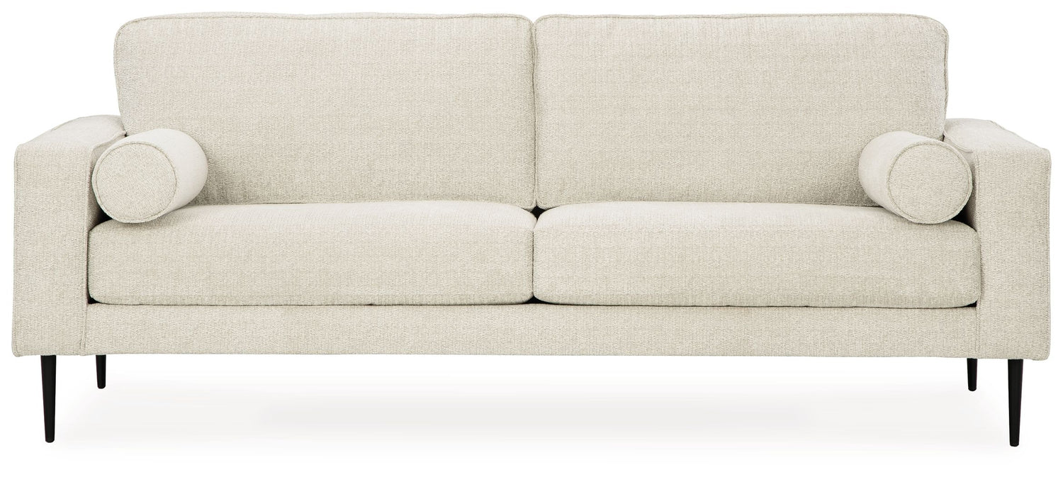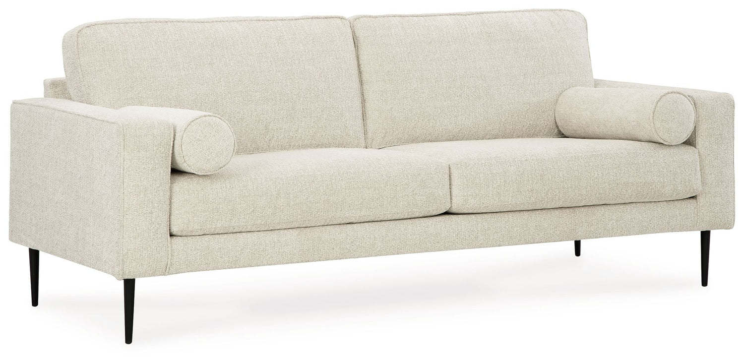 Simple comfort meets modern function in this sofa. An apt addition to apartments and other small spaces, the slim-profiled piece welcomes you with its cozy character. A subtle chevron pattern on the cushions refresh the classic neutral hue, elevating the look while still suiting a variety of styles. Black accent legs add a dash of contemporary flair.