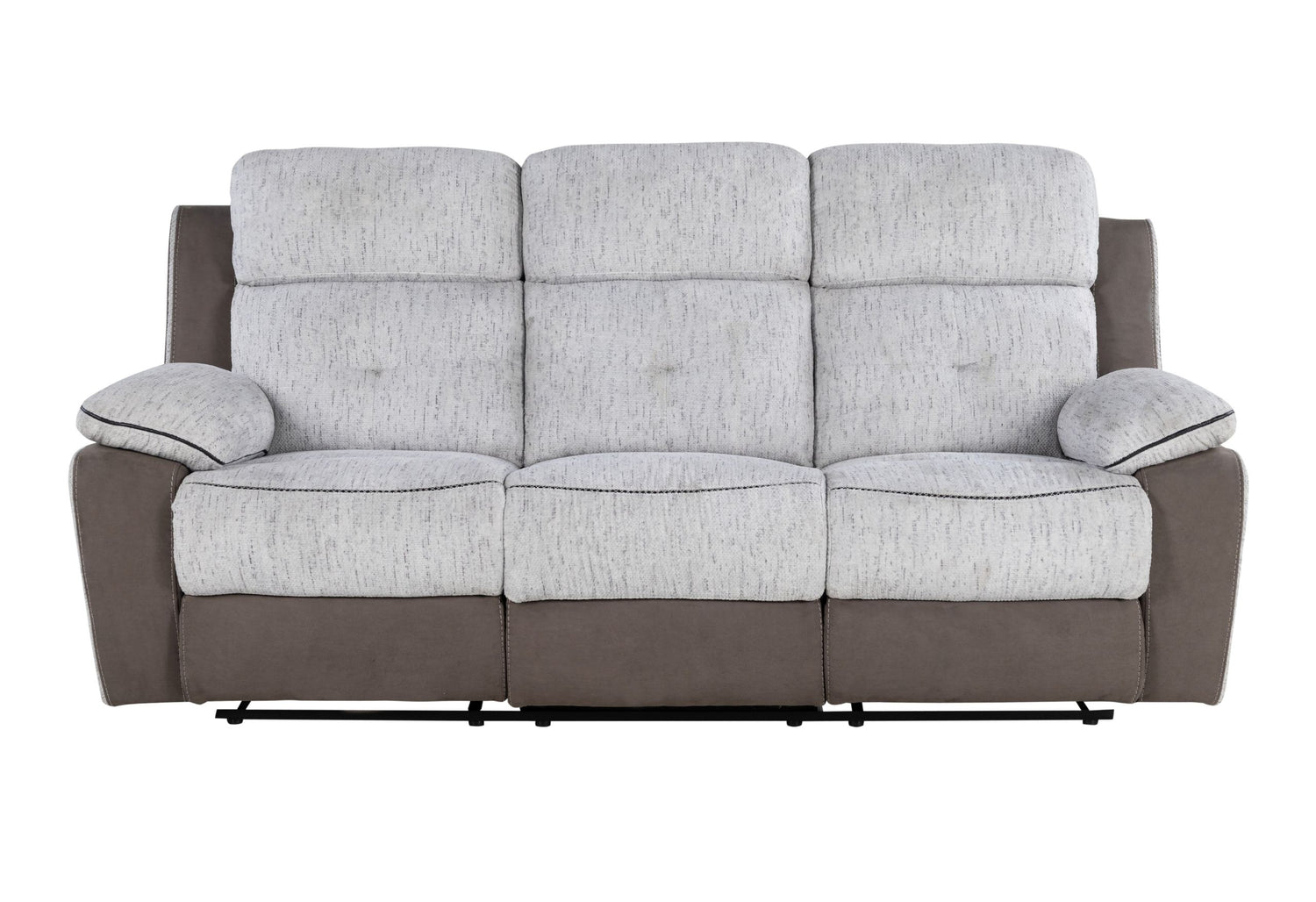 Experience ultimate comfort with the U5050 Reclining Sofa by Global Furniture USA. This piece features manual reclining mechanisms, metal reclining handles, and stylish baseball stitching accents. The two-tone light and dark grey fabric finish adds a contemporary touch to any living space.