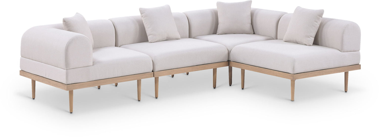 Laguna - 4 Piece Resilient Water Resistant Fabric 106.5" Upholstered Outdoor Patio Modular Sectional - Cream