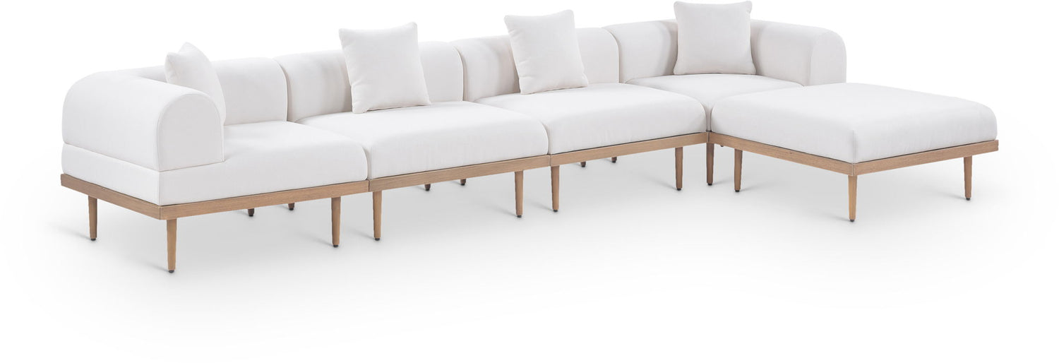 Laguna - 5 Piece Resilient Water Resistant Fabric 142" Upholstered Outdoor Patio Modular Sectional - Cream