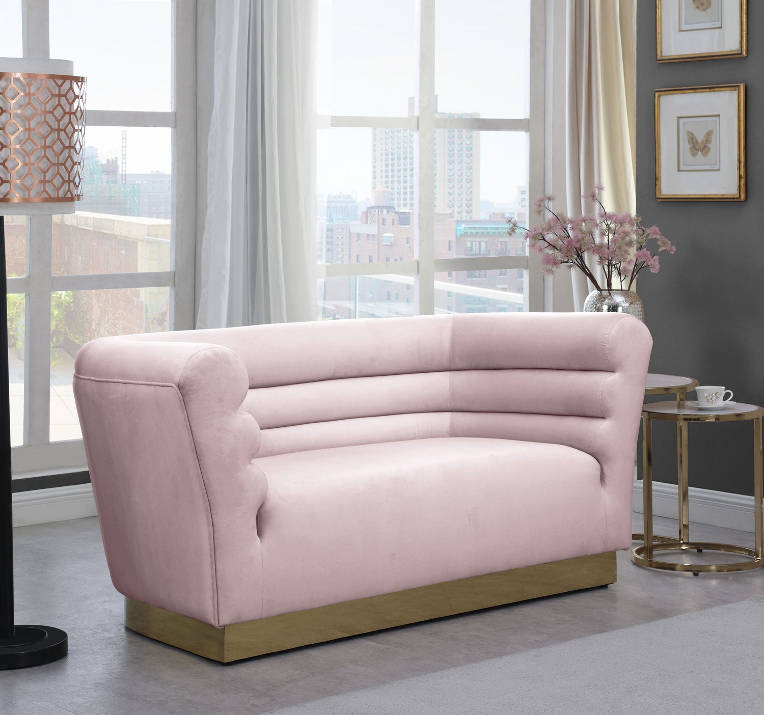 Add a bit of pizzazz to your living space with this Bellini Loveseat from Meridian Furniture. velvet upholstery offers you a luxurious place to curl up with a good book or rest in front of the TV after a long day, while horizontal channel tufting creates texture and style. Its uniquely curved shape makes this piece a perfect addition to any room in your modern home.