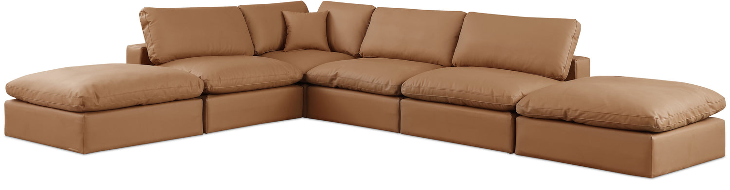 Comfy - 6 Piece Faux Leather Modular Sectional - Cognac