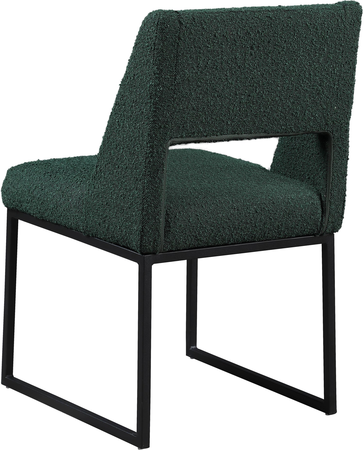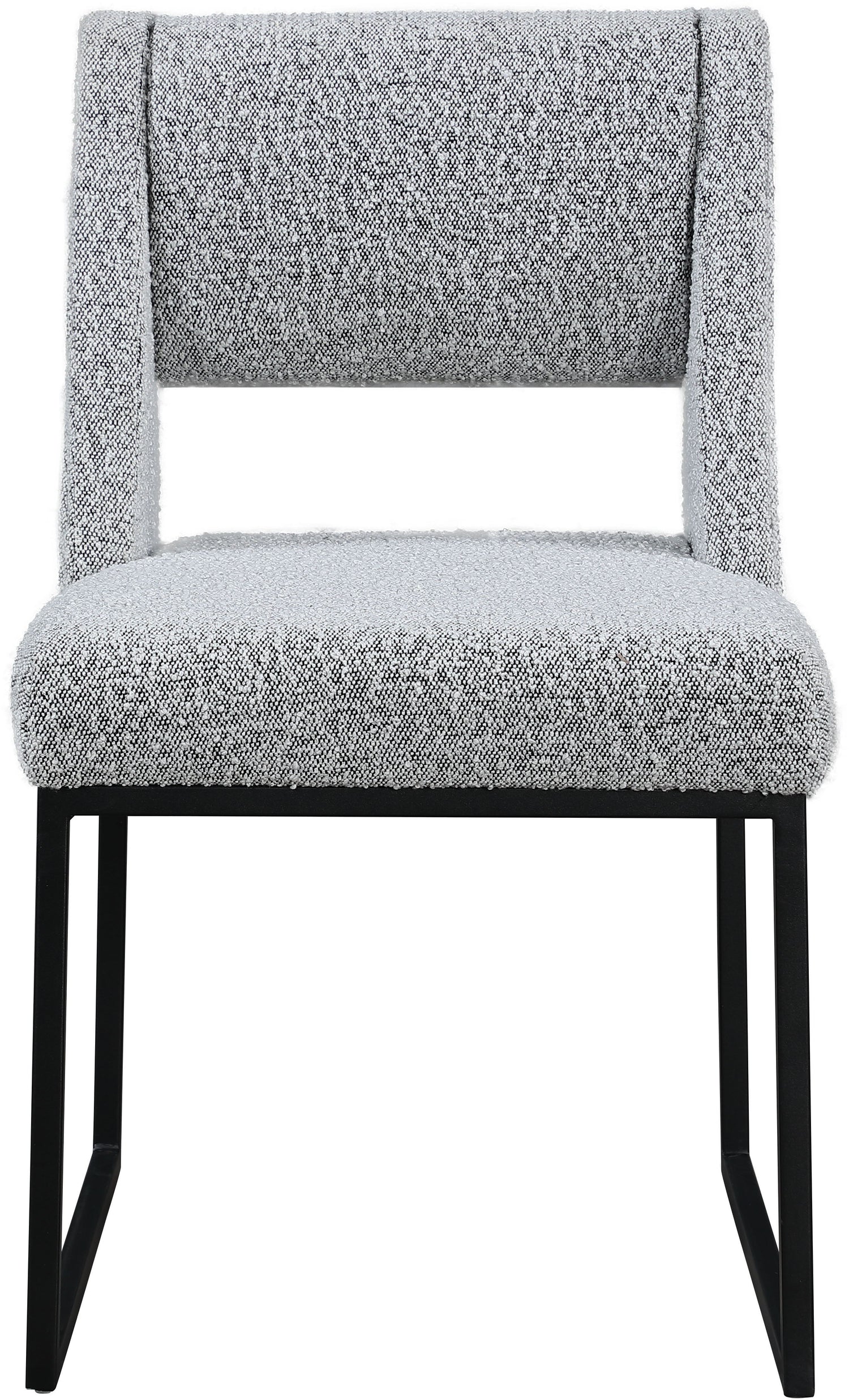 Give your dining area a contemporary makeover with this Jayce cream boucle fabric dining chair. Featuring a matte iron base and rich boucle fabric, this dining chair is both sturdy and cozy. Its contemporary design is ideal for any modern home, and its neutral color matches any color dining table. Its plush boucle upholstery provides you with a comfortable pace to sit, and its open rectangular back is stylish while adding spine support.