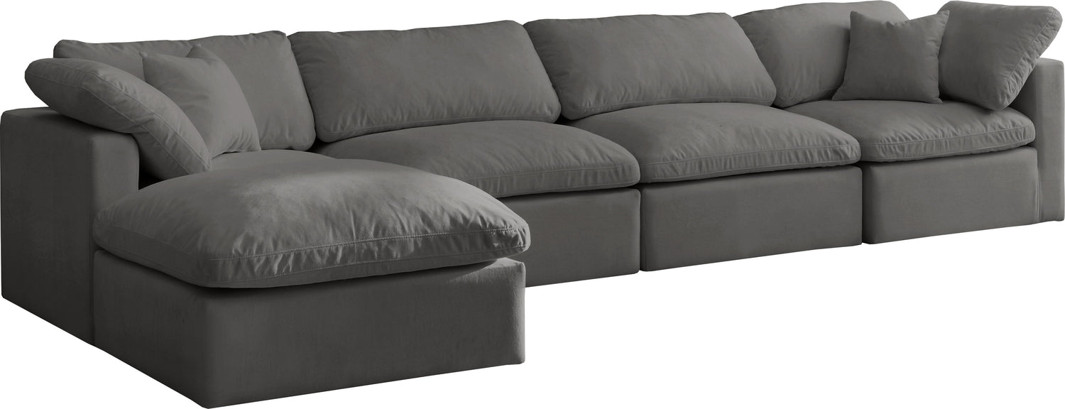Plush - 5 Piece Modular Sectional With Chaise - Gray