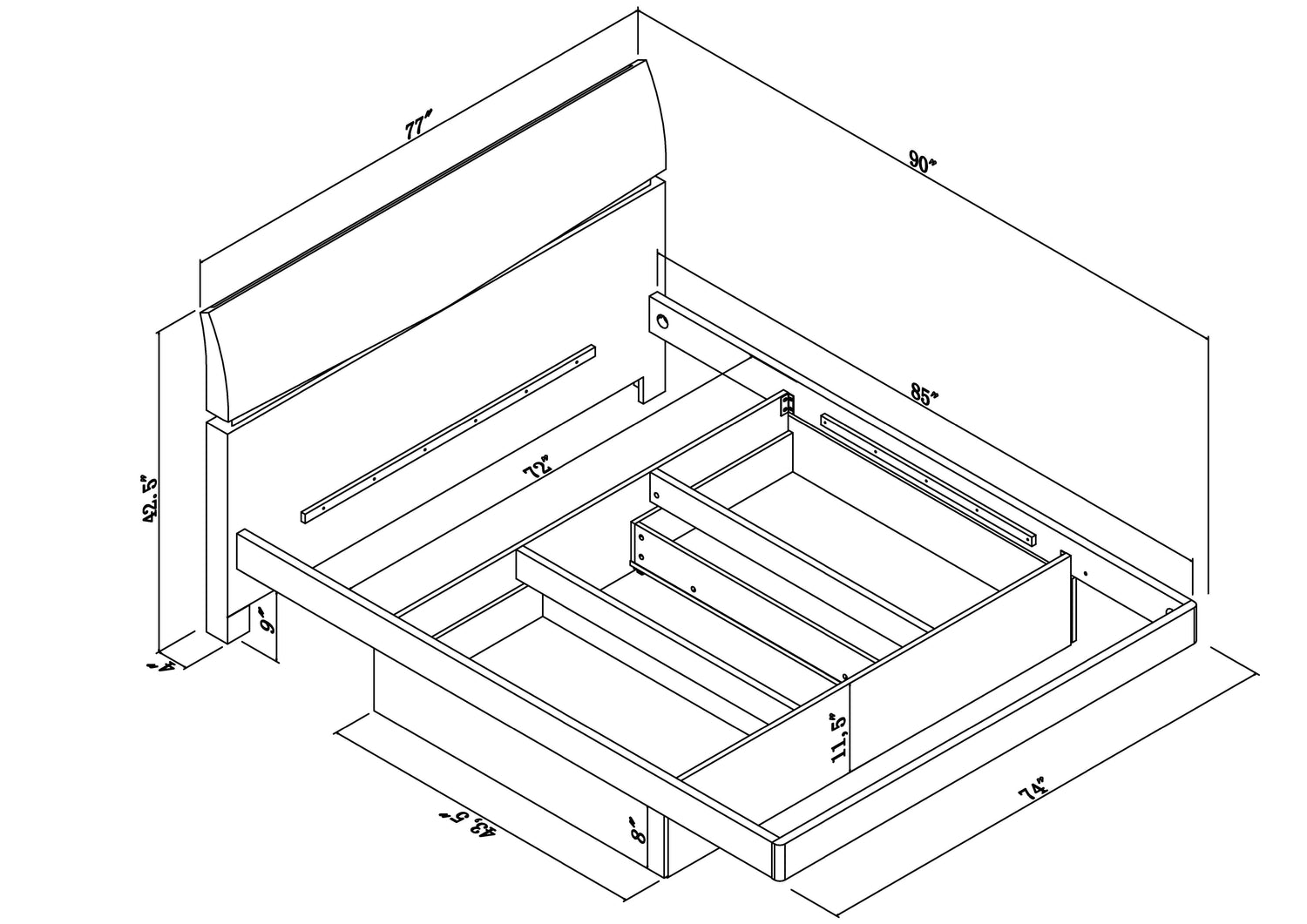 85.0"W x 72.0"D x 42.5"H - 293.0 lb